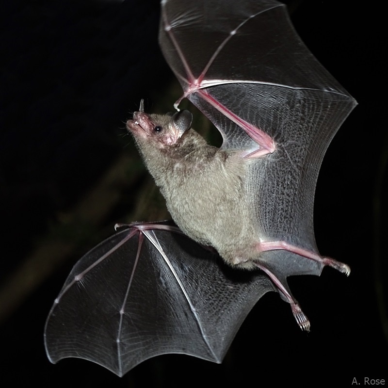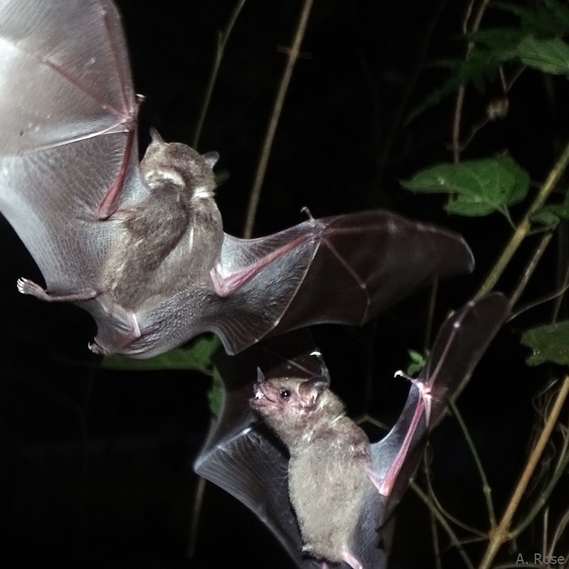 Like ‚mammalian hummingbirds‘, Pallas‘ long-tongued bats (Glossophaga soricina) perform short hovering flights in front of bat-pollinated flowers and use their elongated tongue to lick up the nectar.